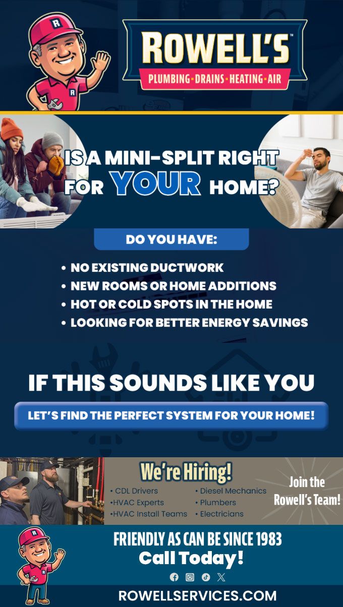 "Friendly As Can Be Since 1983!" When you need help with your plumbing, drains, heating, cooling or electrical in Hebron, you can always rely on Rowell's Services! Call us now or book online!