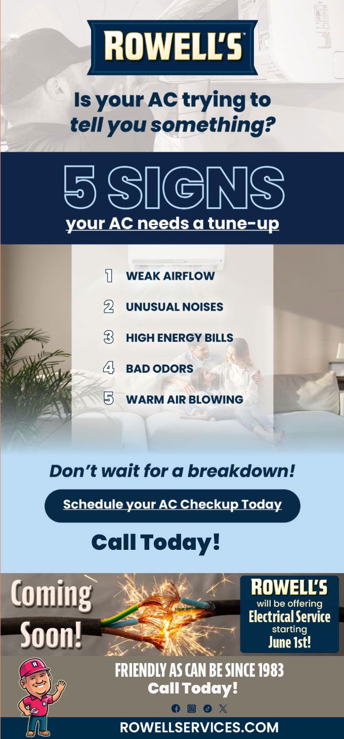 "Friendly As Can Be Since 1983!" When you need help with your plumbing, drains, heating, cooling or electrical in Hebron, you can always rely on Rowell's Services! Call us now or book online!