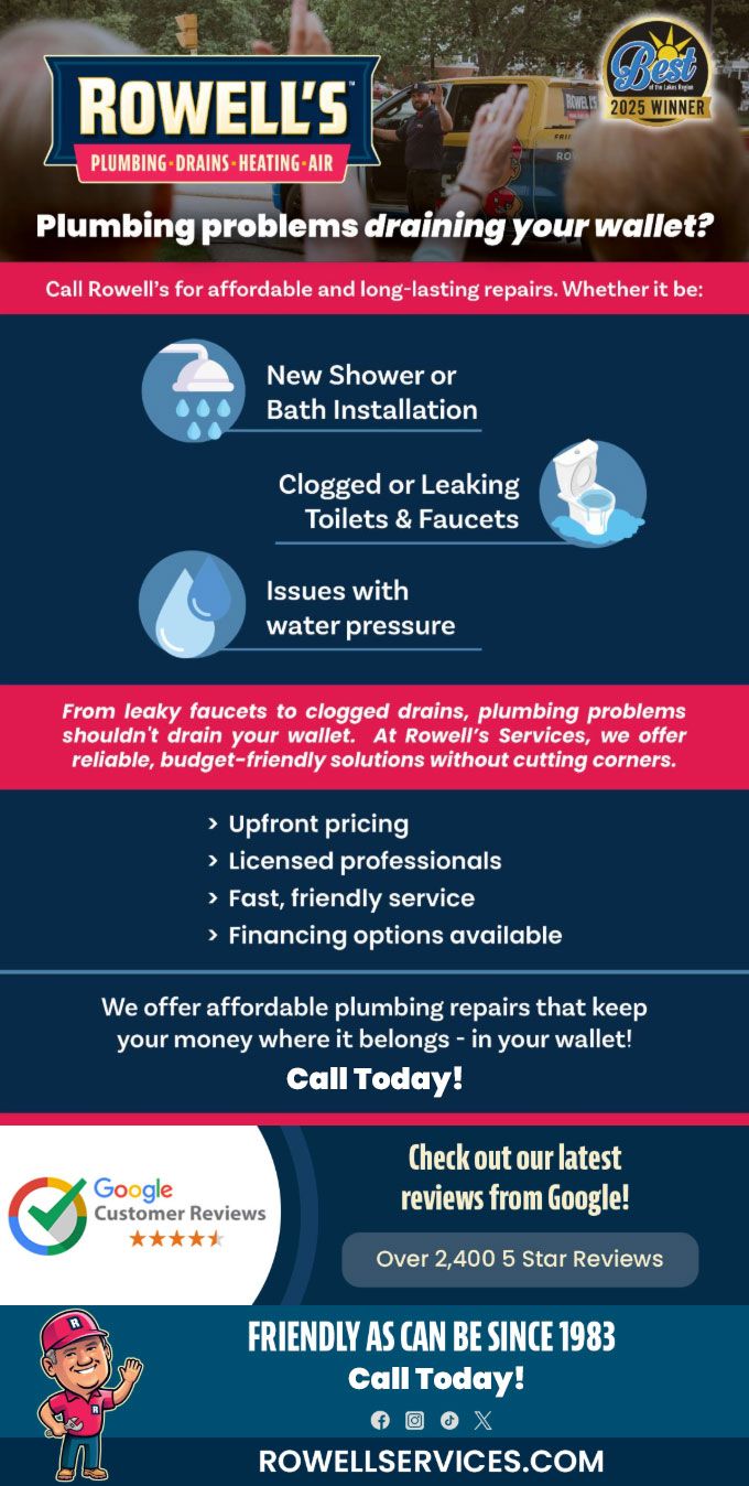 From leaky faucets to clogged drains, plumbing problems shouldn't drain your wallet. At Rowell's Services, we offer reliable, budget-friendly solutions without cutting corners.